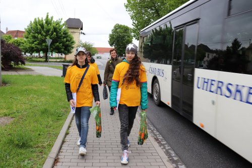 Sešli jsme se v 8:00 na Obecním úřadě v Boršicích, všichni už ve žlutých tričkách s taškou plnou zářících květinek a poučných letáčků. Přišly nás podpořit také Pavlínka a Hanka z DZP Medlovice spolu s dvěma zaměstnankyněmi. Celkově nás tedy chodilo 9. Jako první jsme prodali kytičky na obecním úřadě a poté jsme šli do mateřské školy. Tam už měly paní učitelky vše krásně nachystáno a mohli jsme tedy pokračovat na první stupeň naší školy.
