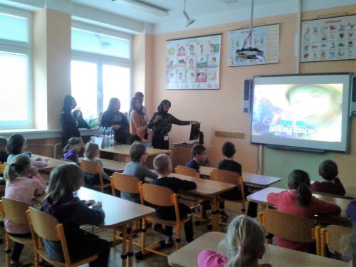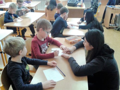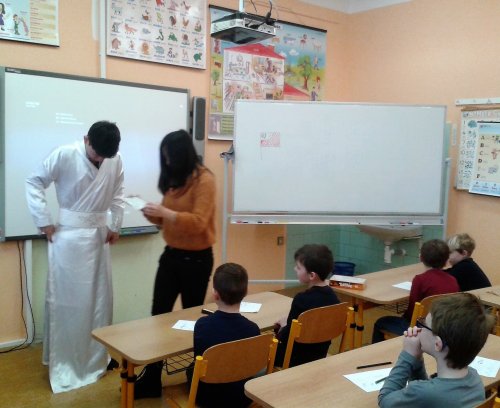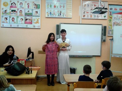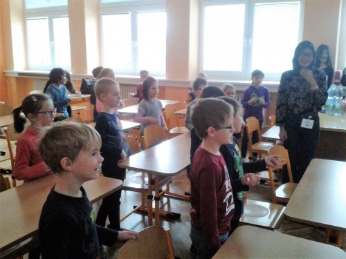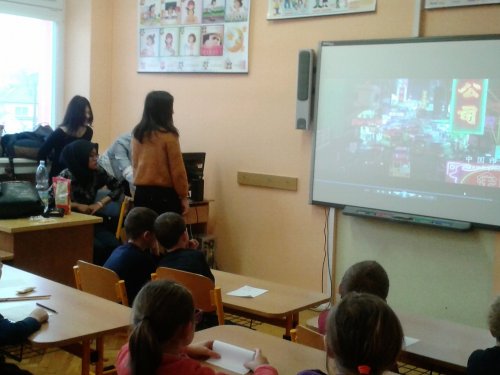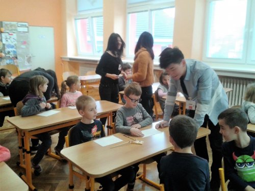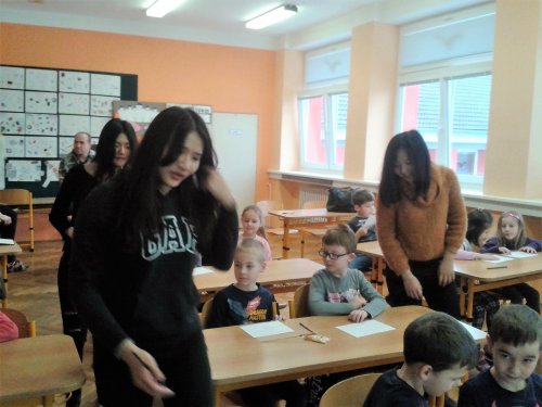 V pondělí 20. února proběhlo v tělocvičně školy slavnostní přivítání zahraničních studentů, kteří k nám přicestovali v rámci projektu EDISON. Žákům byli představeni naši hosté z Číny, Taiwanu, Indonésie a Kazachstánu. V úterý 21. února seznámili naši třídu se svými zeměmi. Pustili nám krátkou prezentaci o Číně a Taiwanu. Společně jsme si zatančili indonéské tance a zazpívali dětské čínské písničky. Děti si prohlédly typické čínské sošky a hůlky k ochutnávání pokrmů. Nechyběla ani ukázka typických čínských oděvů. Všechny děti byly z této hodiny velmi nadšené. Ve středu 22. února proběhlo příjemné netradiční folklorní odpoledne, na které si naši hosté připravili ochutnávku typických pokrmů ze své země.