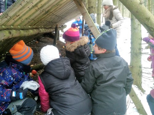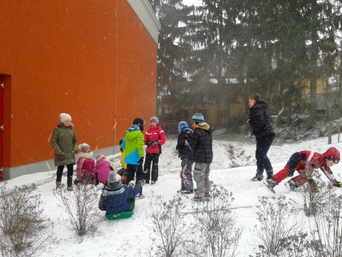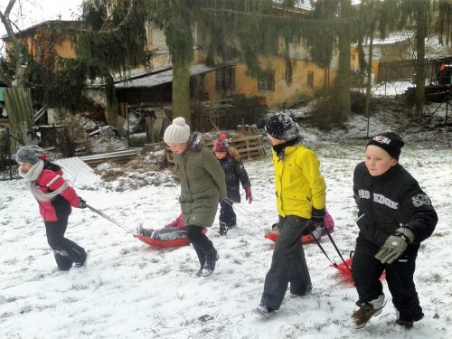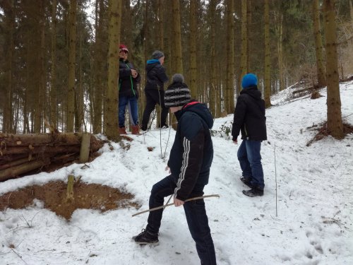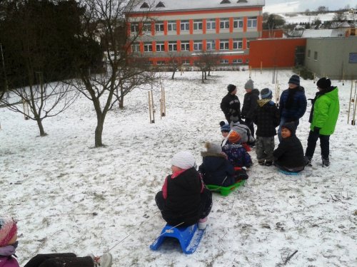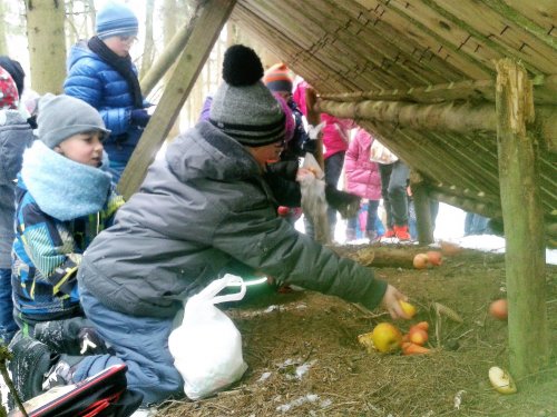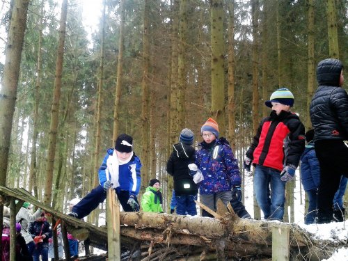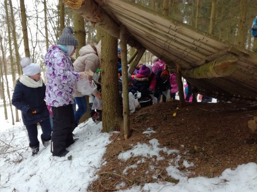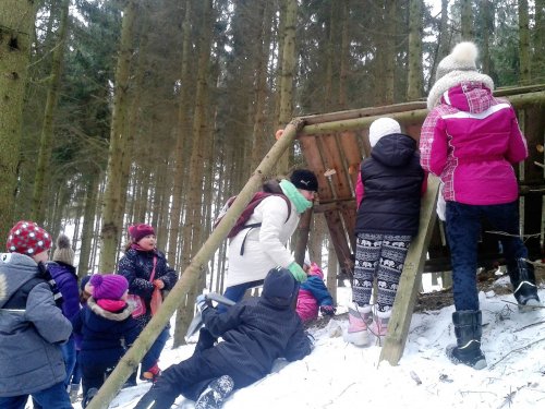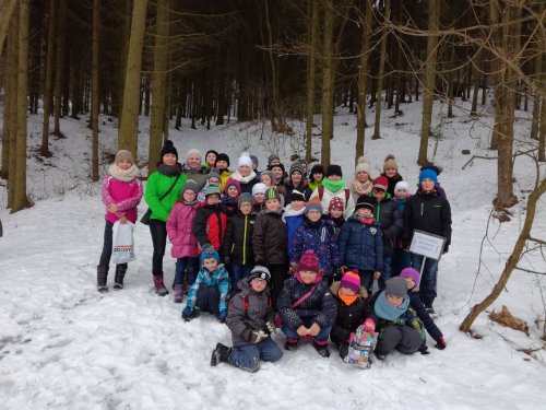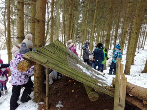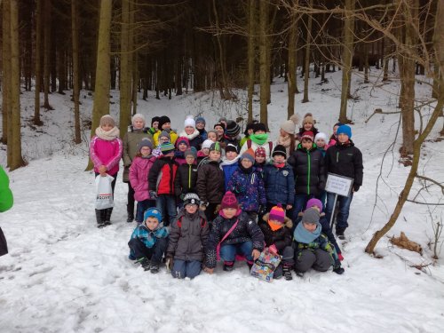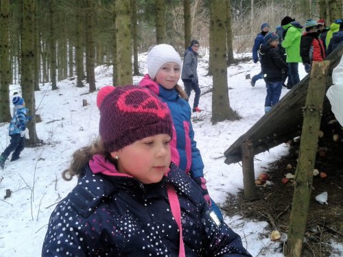 No uznejte, co bychom byli za školáky, kdyby nám byl v zimě, a že ta letošní je obzvlášť chladná, lhostejný osud zvířat v lese. A protože opravdu není, byla naše další akce akcí poznávací a zároveň ušlechtilou. Vyrazili jsme do lesa a s sebou jsme měli každý něco na zub pro zvířata. Nebudete věřit, ale nic jsme po cestě nesnědli, odevzdali pod stříšku v lese a budeme se společně těšit, že na nás nějaký obyvatel lesa až půjdeme na jaře kolem, za odměnu mrkne. A i červené tváře a chuť k obědu byly výsledkem naší vycházky.