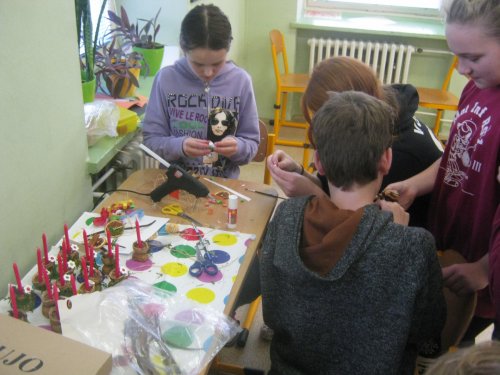 Dne 18. 11. 2016 jsme začali připravovat výrobky na letošní vánoční jarmark, který se uskuteční 3. 12. 2016 v naší obci. Zatím jsme připravovali spíše drobné výrobky, některé výrobky budeme dělat také doma. Snad se nám bude dařit a výrobky budou podařené.
